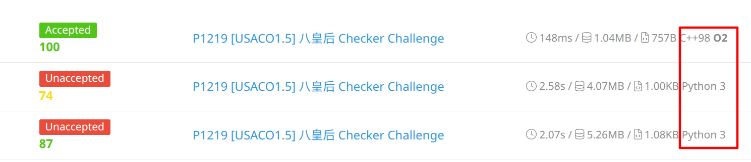print(count)然而还是会超时,甚至比刚刚的方法还慢了,看来Python对位运算的优化做的不是很好。而换用C++后最大的数据点也能够控制在100ms,成功通过此题。